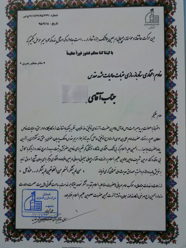 مسئول ستاد بازسازی عتبات عالیات مشهد مقدس با یاد آوری خاطرات سفر و تشکر از زحمات افزود خادمین زوارالحسین معنای اصلی خدمت رسانی را به نمایش گذاشتند و هیچ کس نمی تواند تلاش های خادمین زائرین حسینی را ارزش گذاری کرده و از آن قدر دانی کند.